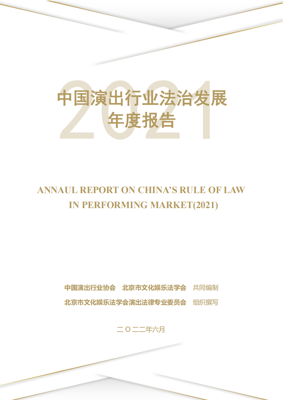 2021年度《中国演出行业法治发展年度报告》(简称“本报告”)由中国演出行业协会与北京市文化娱乐法学会共同编制并联合发布,由北京市文化娱乐法学会演出法律专业委员会组织撰写。