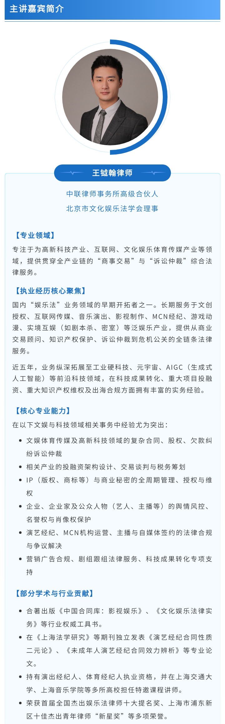 主讲嘉宾:王钺翰律师(中联律师事务所高级合伙人)