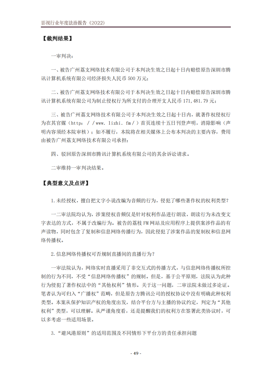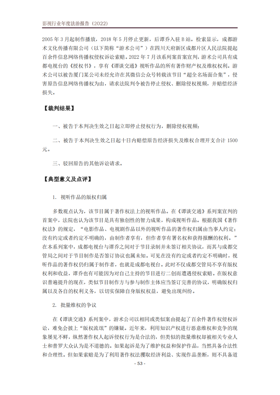 《影视行业年度法治报告(2022)》