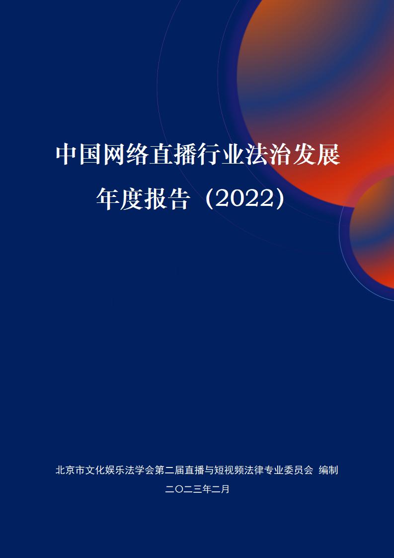 《中国网络直播行业法治发展年度报告(2022)》(以下简称《报告》)由北京市文化娱乐法学会第二届直播与短视频法律专业委员会组织编制。